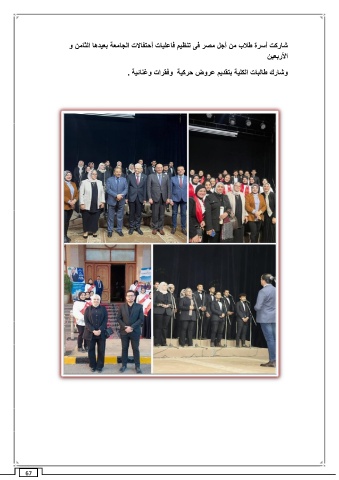 و نماثلا اهديعب ةعماجلا تلاافتحأ تايلعاف ميظنت ىف رصم لجأ نم بلاط ةرسأ تكراش نيعبرلأا . ةيئانغو تارقفو ةيكرح ضورع ميدقتب ةيلكلا تابلاط كراشو 67
