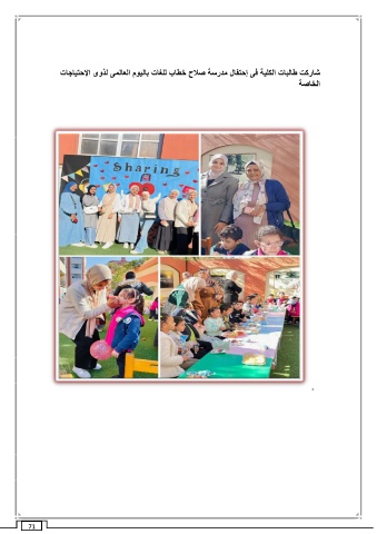 تاجايتحلإا ىوذل ىملاعلا مويلاب تاغلل باطخ حلاص ةسردم لافتحإ ىف ةيلكلا تابلاط تكراش ةصاخلا . 71
