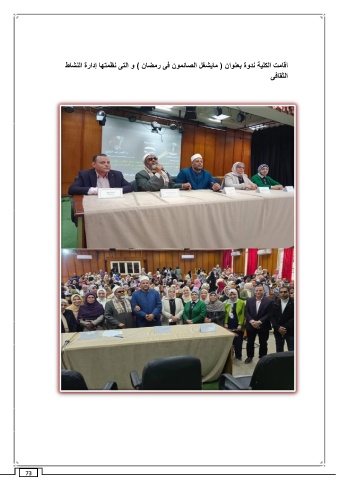 طاشنلا ةرادإ اهتمظن ىتلا و ) ناضمر ىف نومئاصلا لغشيام ( ناونعب ةودن ةيلكلا تماق أ ىفاقثلا 73