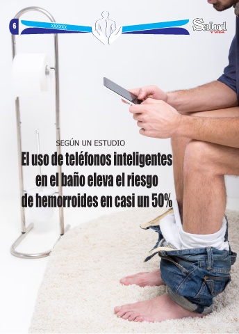 6 XXXXXX Y VIDA SEGÚN UN ESTUDIO El uso de teléfonos inteligentes en el baño eleva el riesgo de hemorroides en casi un 50%