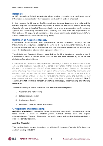 Academic honesty in the IB and at ISS falls into four main categories: 1. Plagiarism and Referencing