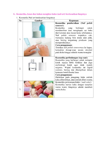 G. Kosmetika, lenan dan bahan menghias kuku (nail art) berdasarkan fungsinya