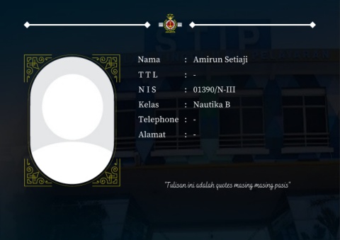 Nama : Amirun Setiaji T T L : - N I S : 01390/N-III Kelas : Nautika B Telephone : - Alamat : - "Tulisan ini adalah quotes masing masing pasis"