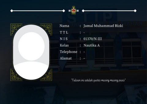 Nama : Jamal Muhammad Rizki T T L : - N I S : 01370/N-III Kelas : Nautika A Telephone : - Alamat : - "Tulisan ini adalah quotes masing masing pasis"
