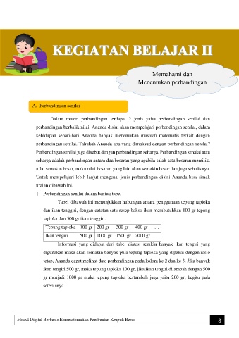 Dalam materi perbandingan terdapat 2 jenis yaitu perbandingan senilai dan