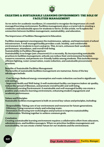 - Enhanced Learning Environment: A sustainable and well-managed facility can create a