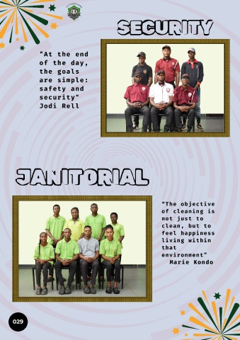 SECURITY "At the end of the day, the goals are simple: safety and security" Jodi Rell JANITORIAL “The objective of cleaning is not just to clean, but to feel happiness living within that environment” Marie Kondo 029