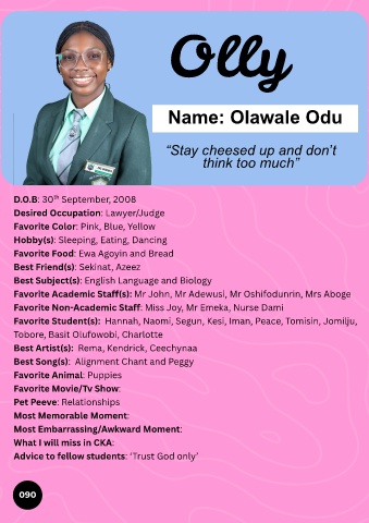 Favorite Non-Academic Staff: Miss Joy, Mr Emeka, Nurse Dami