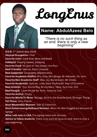 Favorite Non-Academic Staff: Miss Joy, Nurse Dami, Mr Emeka