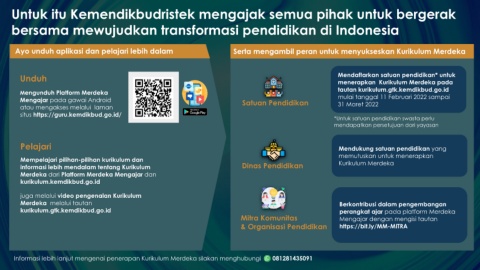 Informasi lebih lanjut mengenai penerapan Kurikulum Merdeka silakan menghubungi 081281435091