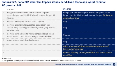 Tahun 2022, Dana BOS diberikan kepada satuan pendidikan tanpa ada syarat minimal