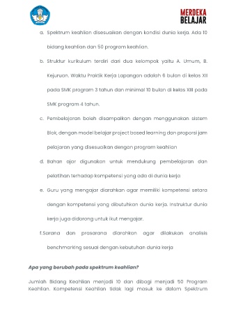 a. Spektrum keahlian disesuaikan dengan kondisi dunia kerja. Ada 10