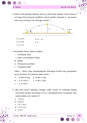 5. Jika bola basket dilempar dengan sudut elevasi 30 terhadap bidang
