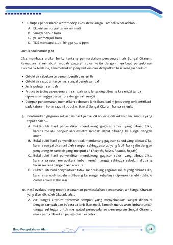 8. Dampak pencemaran air terhadap ekosistem Sungai Tambak Wedi adalah...