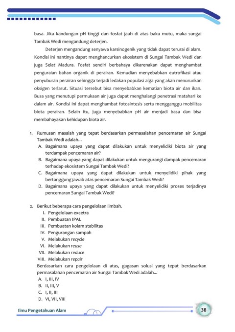 1. Rumusan masalah yang tepat berdasarkan permasalahan pencemaran air Sungai