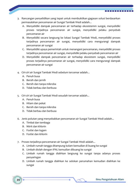 7. Proses terjadinya pencemaran air Sungai Tambak Wedi adalah...
