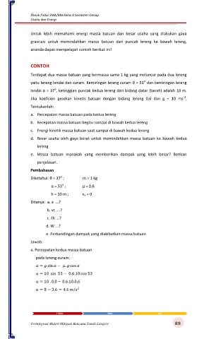 Terdapat dua massa batuan yang bermassa sama 1 kg yang meluncur pada dua lereng