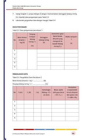 7. Ulangi langkah 1 sampai dengan 6 dengan memvariasikan ketinggian bidang miring