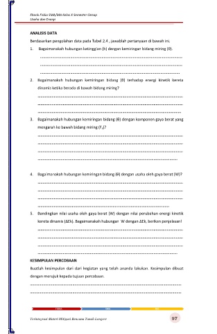 5.  Bandingkan nilai usaha oleh gaya berat (W) dengan nilai perubahan energi kinetik