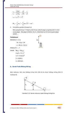 Bola  meluncur  dari  atas  bidang  miring  licin  (titik  A)  ke  dasar  bidang  miring  (titik  C)