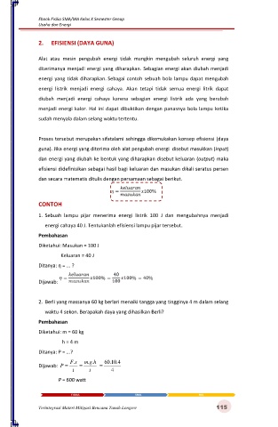 1. Sebuah  lampu  pijar  menerima  energi  listrik  100  J  dan  mengubahnya  menjadi