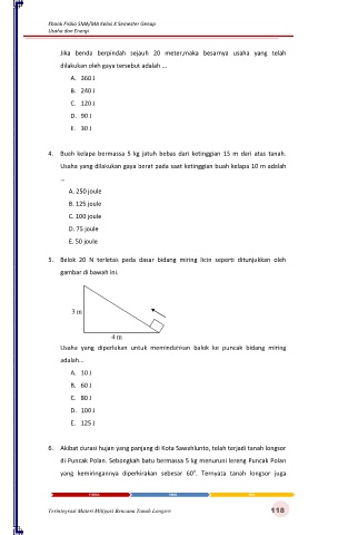 4.  Buah  kelapa  bermassa 5  kg  jatuh  bebas  dari  ketinggian  15  m  dari  atas  tanah.