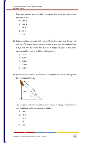 13.  Sejumlah massa tanah 20 kg meluncur dari ketinggian 10 m di atas bidang batas