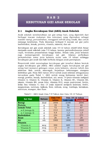 2.1 Angka Kecukupan Gizi (AKG) Anak Sekolah
