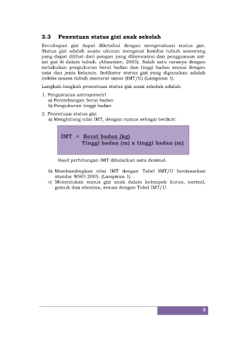 a) Menghitung nilai IMT, dengan rumus sebagai berikut: