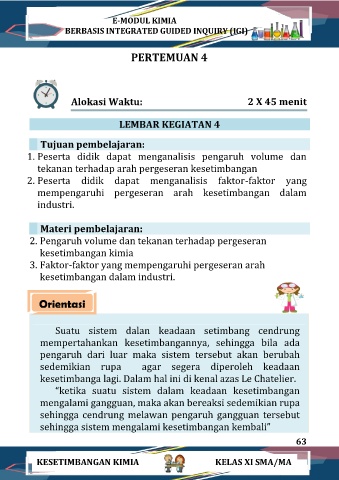 kesetimbanga lagi. Dalam hal ini di kenal azas Le Chatelier.