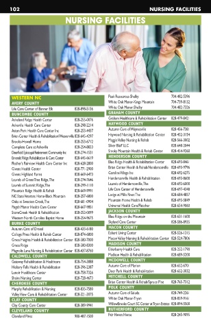 Asheland Ridge Health Center 828-255-0076 Graham Healthcare & Rehabilitation Center 828-479-8421