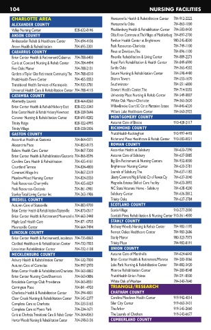 Carolina Care Health & Rehabilitation 704-435-4161 Big Elm Retirement & Nursing Centers 704-932-0000