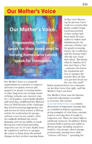 changes in their mother’s nursing home. “whoever will listen” – spreading her