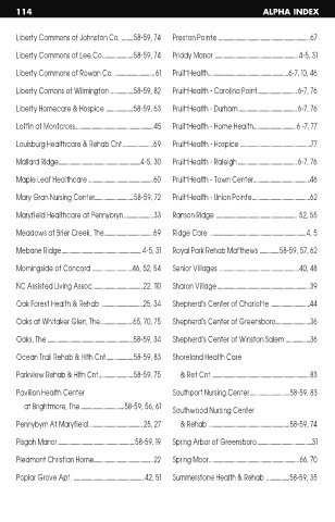 Liberty Comons of Wilmington .....................58-59, 82 PruittHealth - Carolina Point .....................................6-7, 76