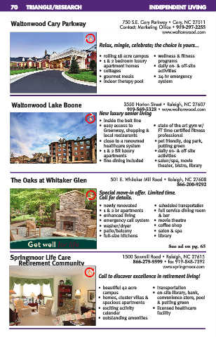 70 TRIANGLE/RESEARCH INDEPENDENT LIVING