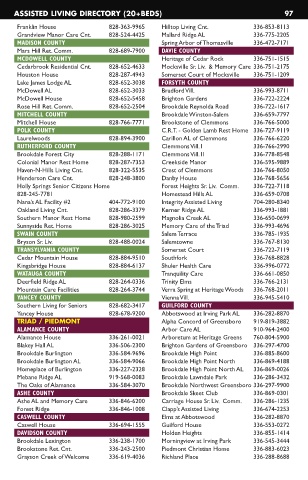 Forest Ridge 336-846-1008 Clapp’s Assisted Living 336-674-2253