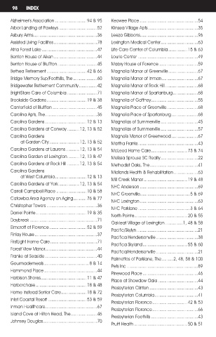 Bridgewater Retirement Community ...............42 Magnolia Manor of Rock Hill ...........................68