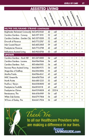 NE/PEE DEE/GRAND STRAND CONTINUED STARTING PRICE PRIVATE SEMI-PRIVATE RESPITE STAYS PETS WELCOME