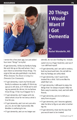 family to embrace my reality. If I think my • If I get dementia, I still want to enjoy the