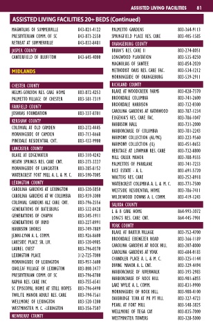 MORNINGSIDE OF LEXINGTON 803-957-3600 DIVINE MANOR A. L. CNT. 803-329-4494