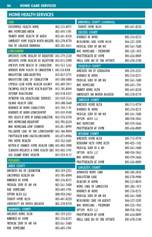 AMEDISYS HOME HEALTH OF BLUFFTON 843-815-3090 WELL CARE HH OF THE UPSTATE 803-670-2100
