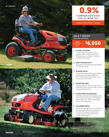 GR2120 comparison rate. This finance offer is available until 30/06/20 and applies to Different term and different deposit may result in a different rate. Credit provided by Kubota Australia Pty Ltd ABN 72005300621. This finance offer is available