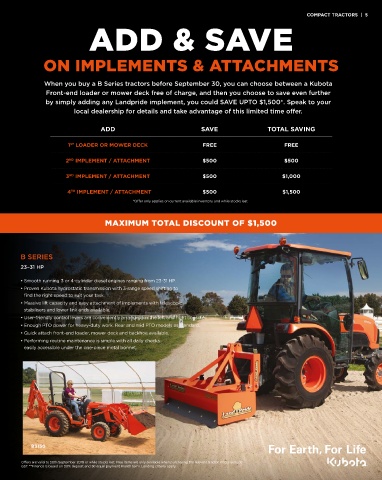 When you buy a B Series tractors before September 30, you can choose between a Kubota