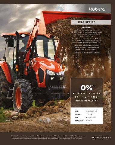 10 | MID-SIZED TRACTORS rate. Credit provided by Kubota Australia Pty Ltd ABN 72005300621. This finance offer is available until 31/10/19 and applies to new M series models. MID-SIZED TRACTORS | 11