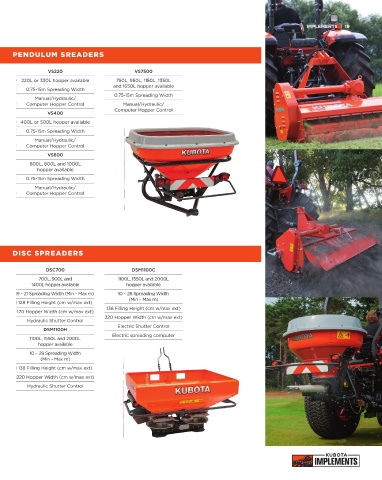 IMPLEMENT TYPE IMPLEMENT MODEL WORKING WIDTH PENDULUM SREADERS