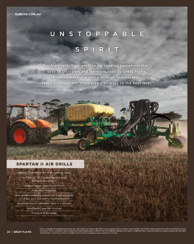22 | GREAT PLAINS of $4,000. Terms, conditions, fees, charges and credit criteria apply. Different term and different deposit may result in a different rate. Credit provided by Kubota Australia Pty Ltd ABN GREAT PLAINS | 23