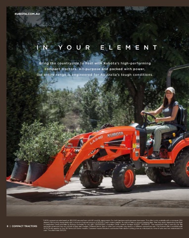 8 | COMPACT TRACTORS examples given and may not include all fees and charges. Different terms, fees or other loan amounts may result in a different comparison rate. This finance offer is available until COMPACT TRACTORS | 9