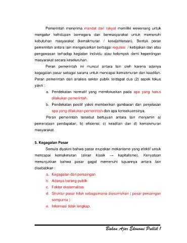 kegagalan pasar sebagai sarana untuk mencapai kemakmuran dan keadilan.