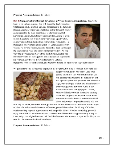 Day 4: Catalan Culture through its Cuisine, a Private Epicurean Experience. Today, the