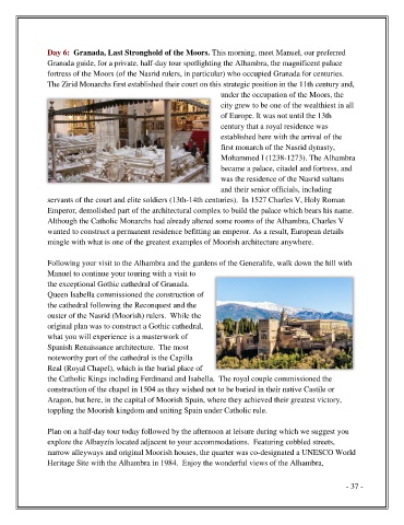 Day 6: Granada, Last Stronghold of the Moors. This morning, meet Manuel, our preferred